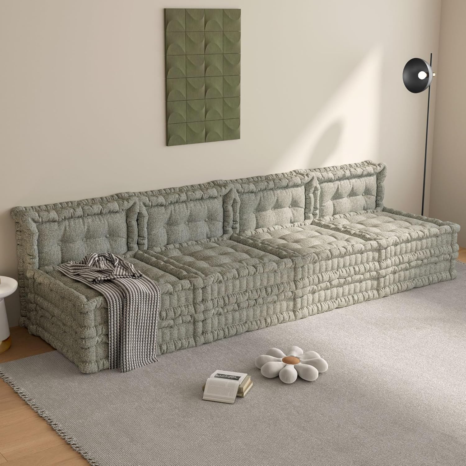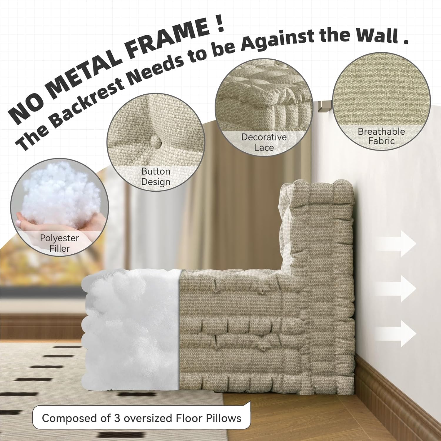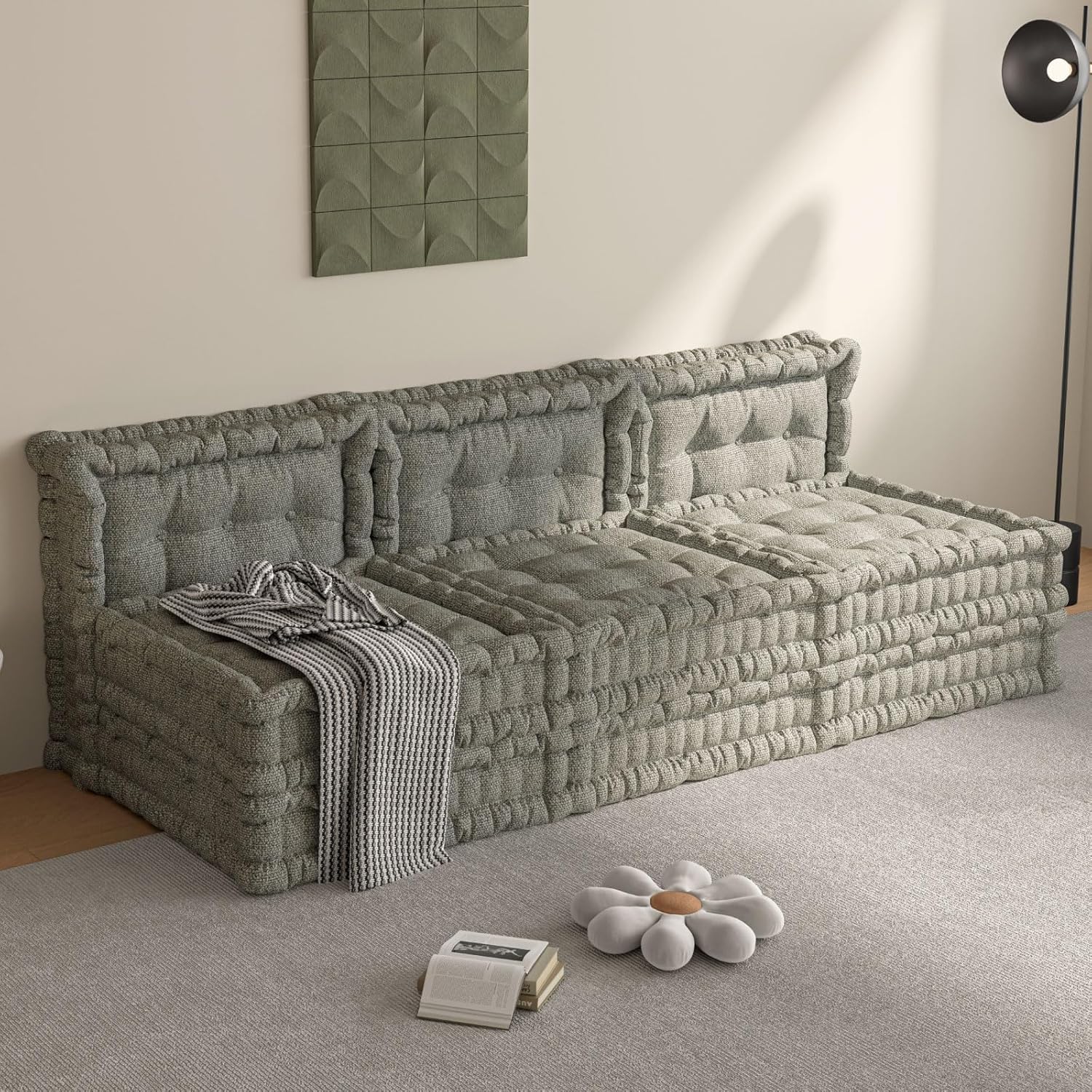 WOWMAX Floor Sofa Couch Bed Convertible Lazy Sofa,Polyester-Gray