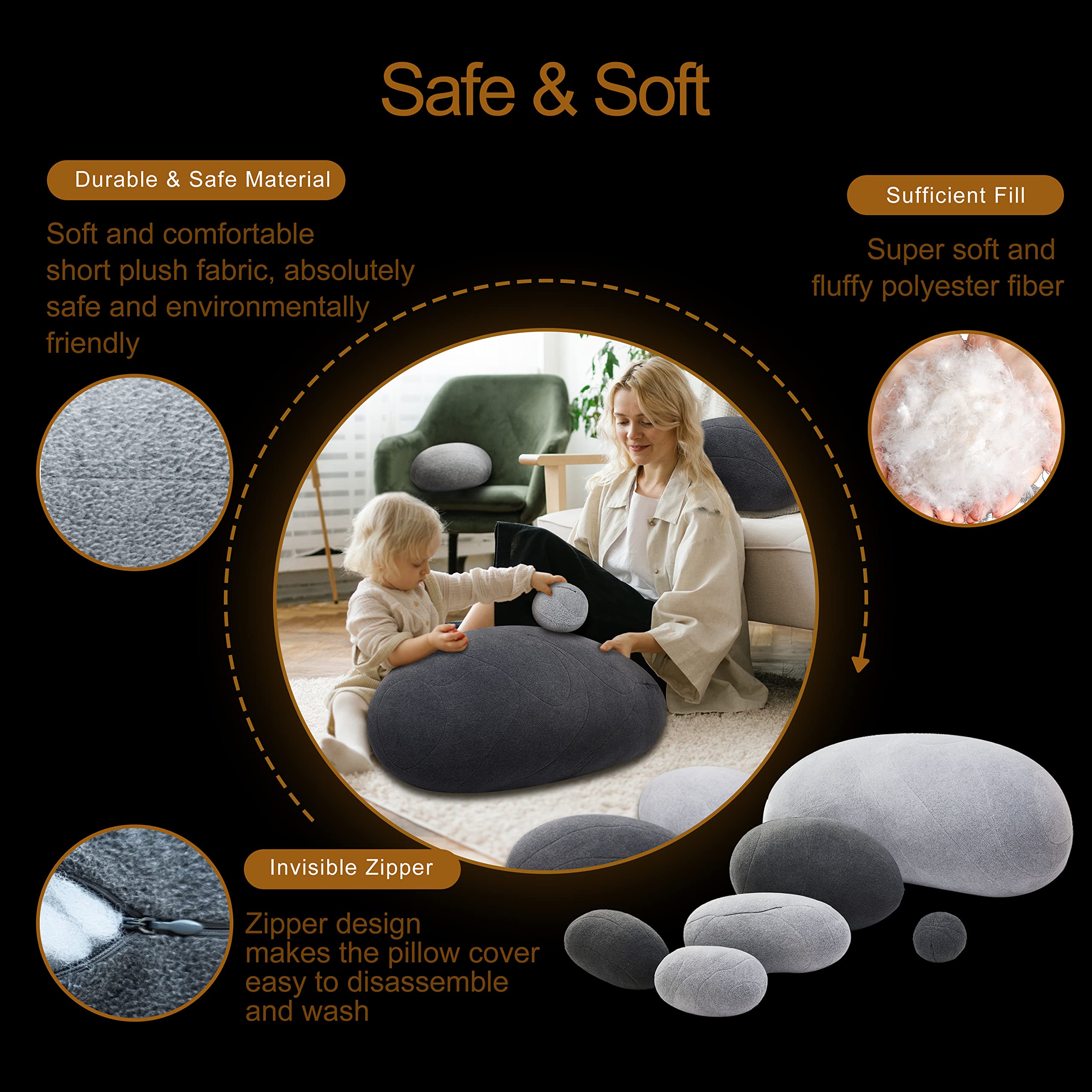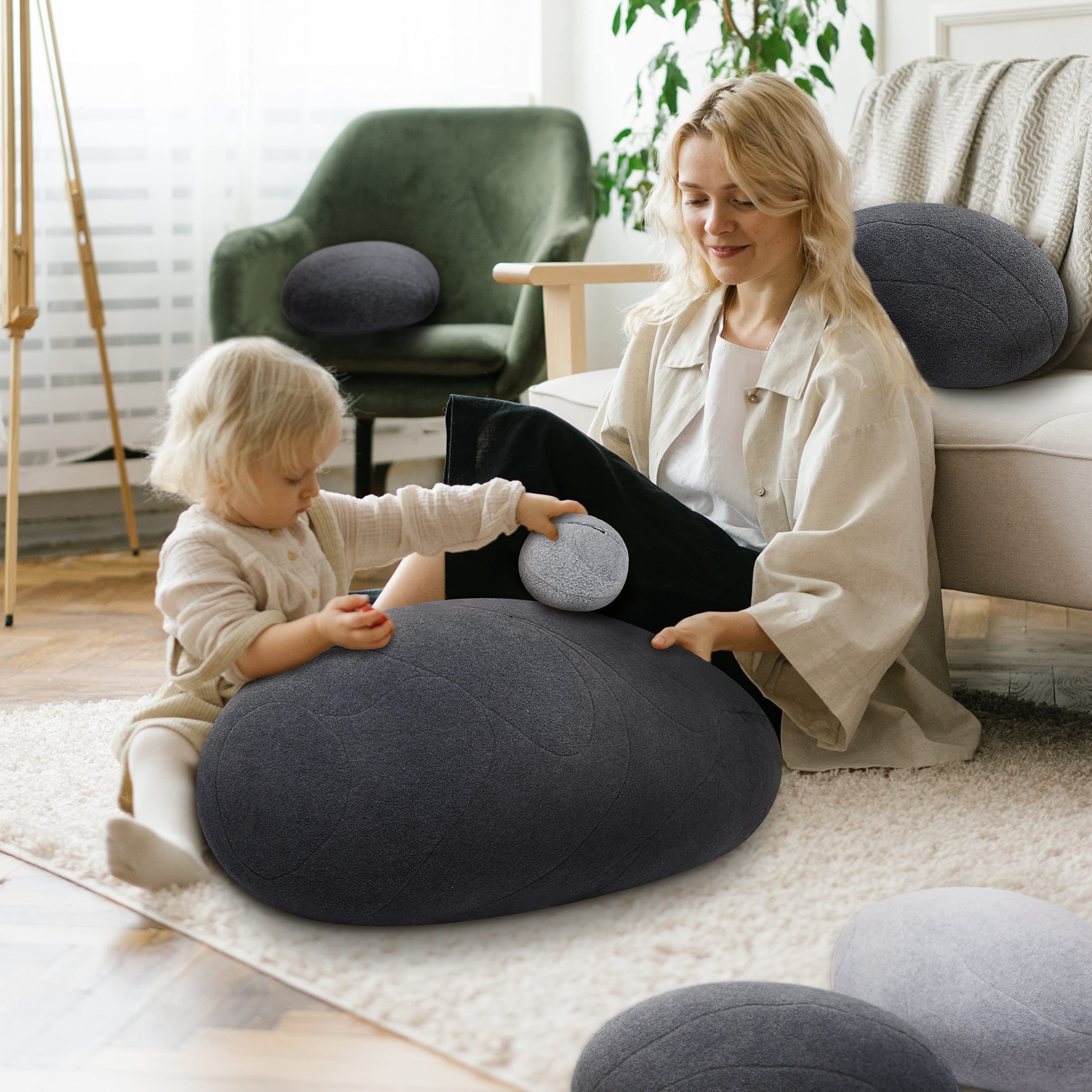 3D-Steinkissen, 6 verschiedene Größen – Dunkelgrau und Hellgrau