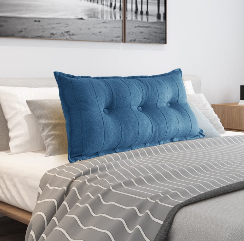 Rechteckiges Kopfteil-Lesekissen, Leinen, Blau