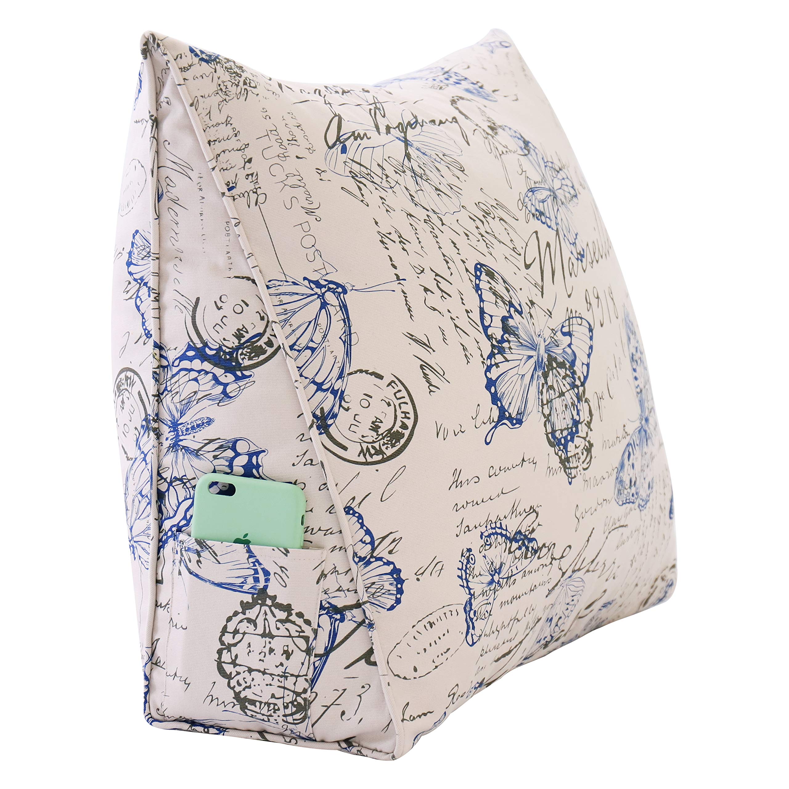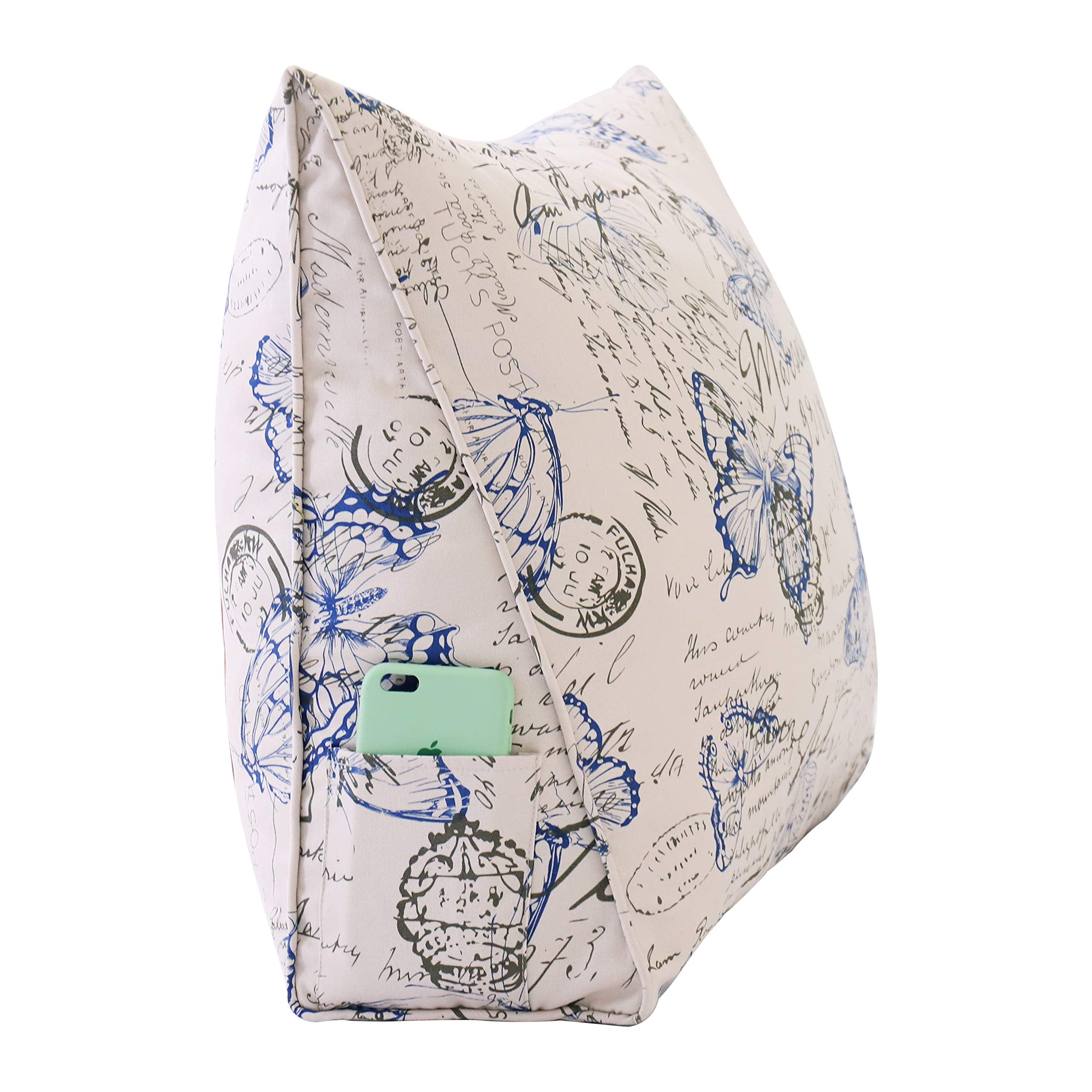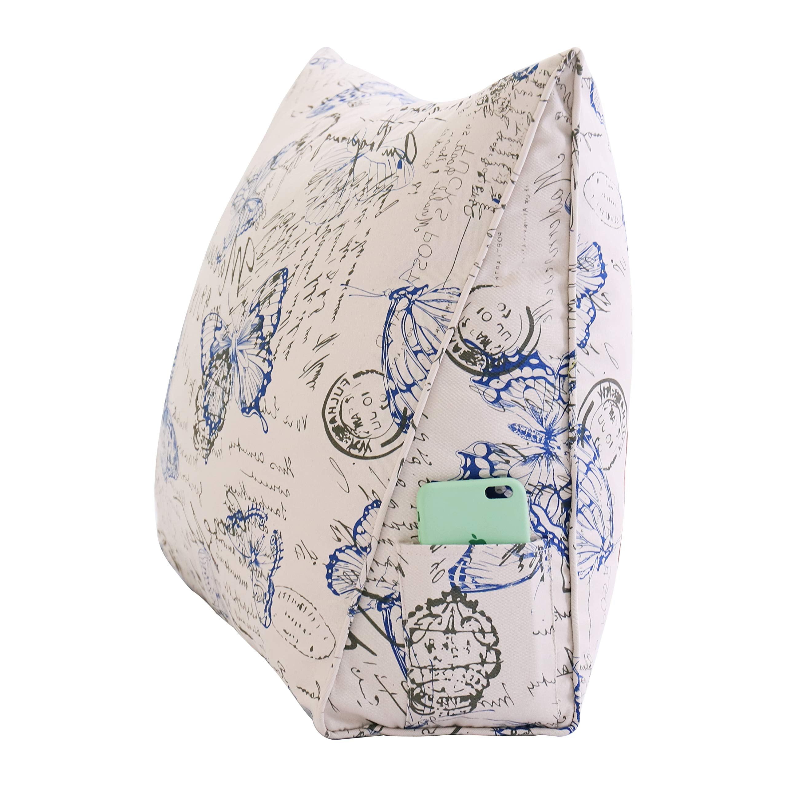 Backrest Lounge Cushion with Pocket 100% Cotton—Blue Butterfly