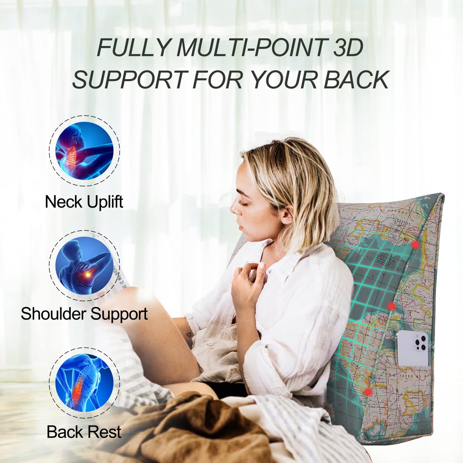 For many sleepers, a bed is much more than a soft surface for resting — it’s a place for lounging, reading, playing video games, and watching Netflix. If you spend a lot of time working or relaxing while seated upright in bed, you may have noticed it can be a struggle to find a comfortable position. Stacking standard sleep pillows against your headboard typically offer insufficient support while compromising the durability and shape of your pillows.wowmax reading pillow offers cozy support for your lounge time