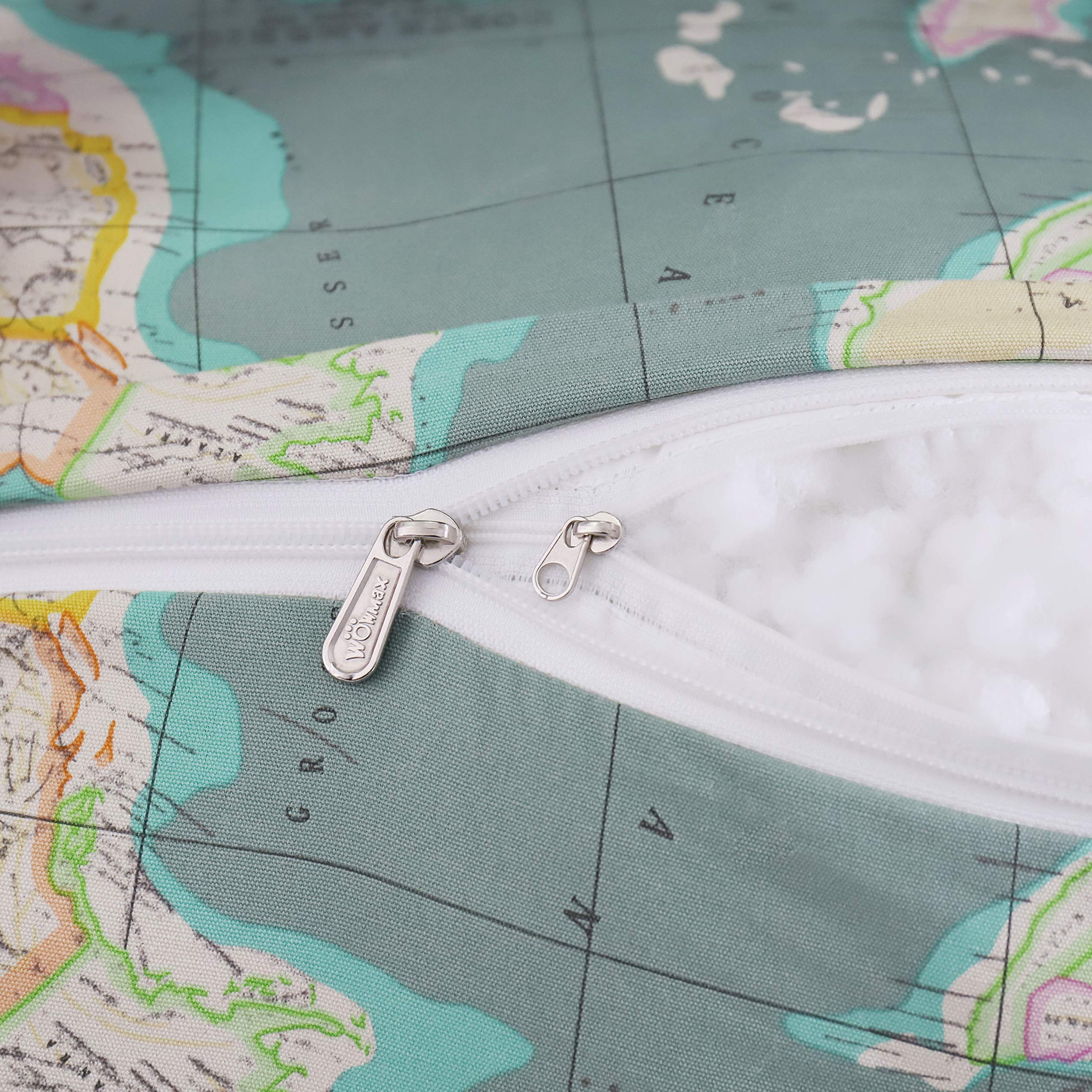 Backrest Lounge Cushion with Pocket 100% Cotton—World Map Green
