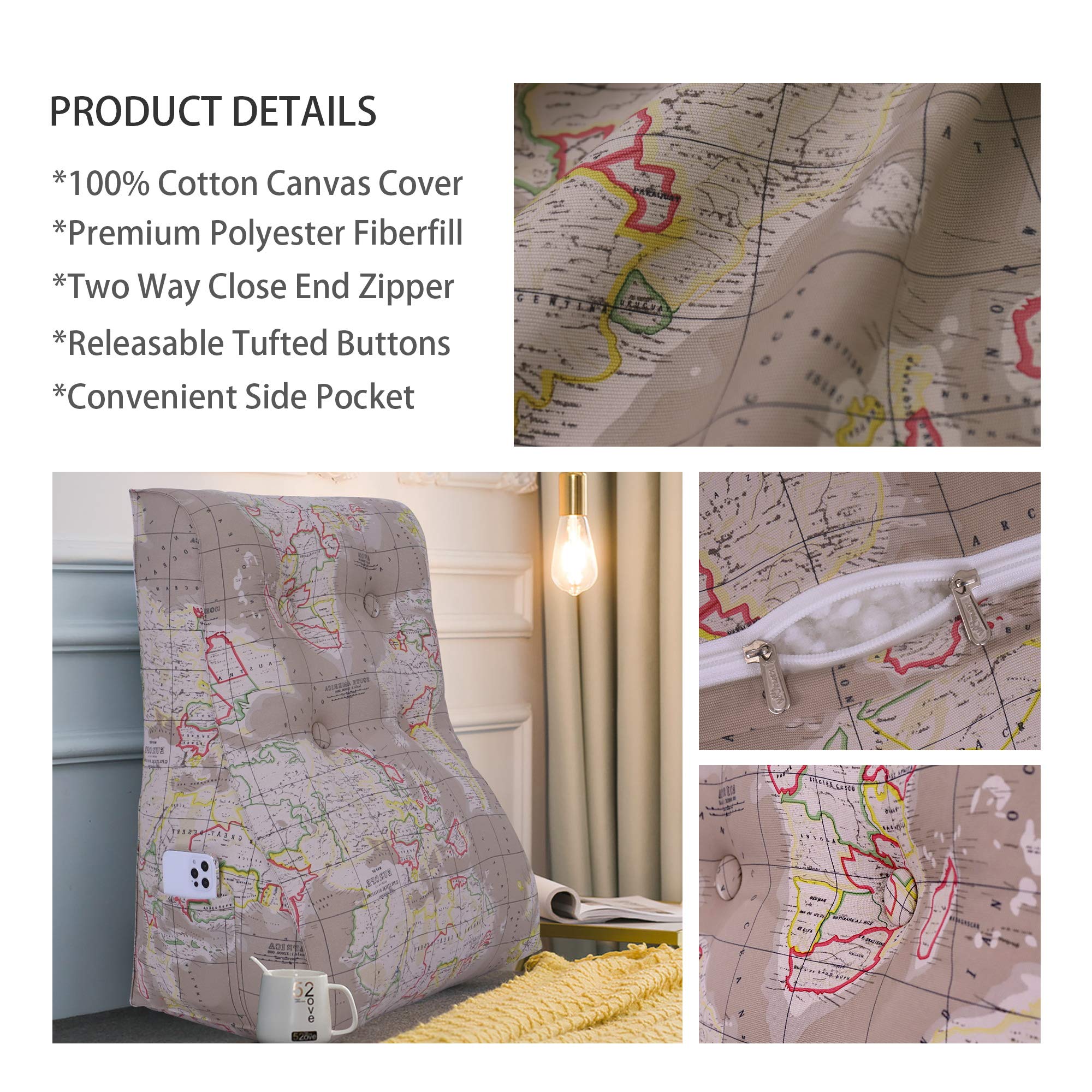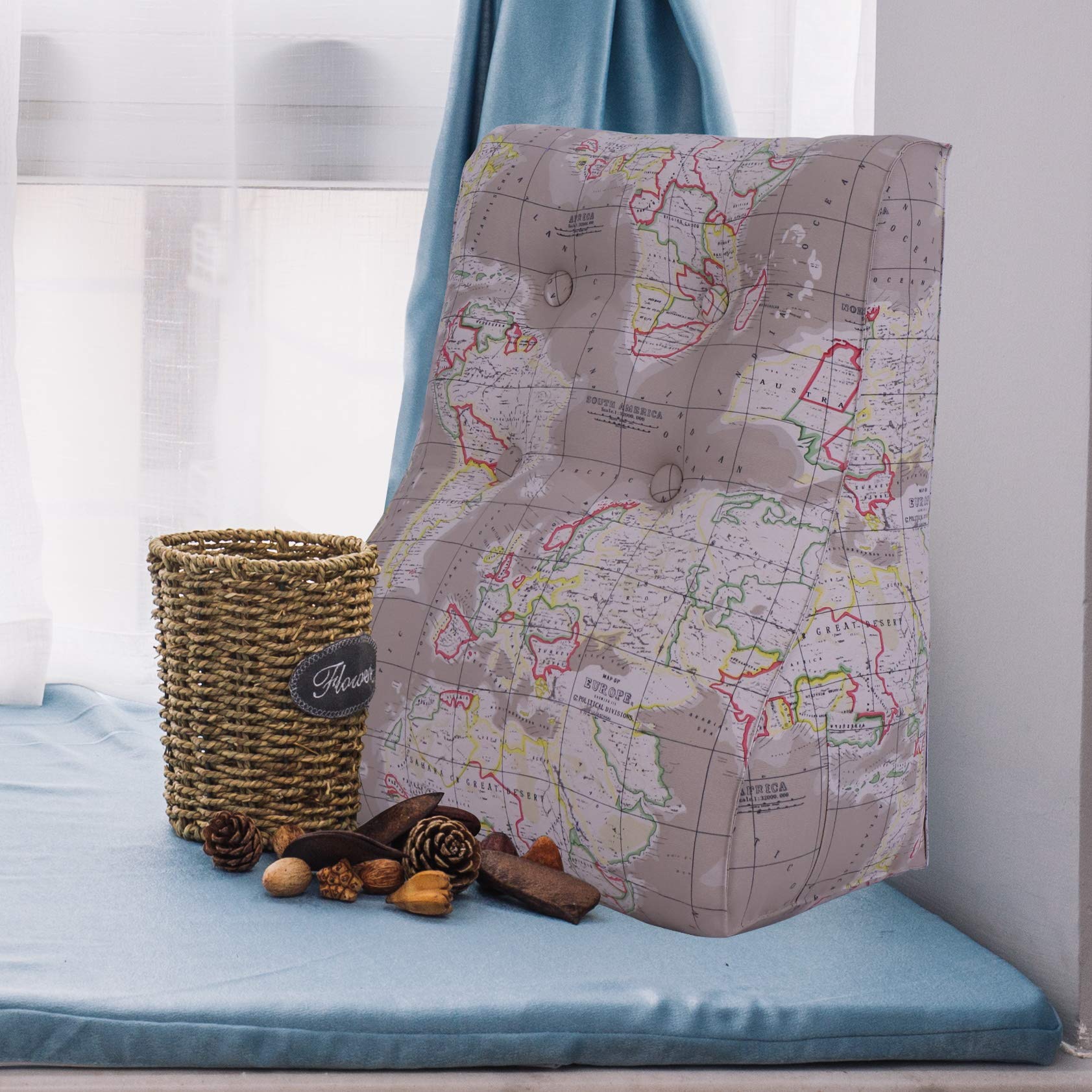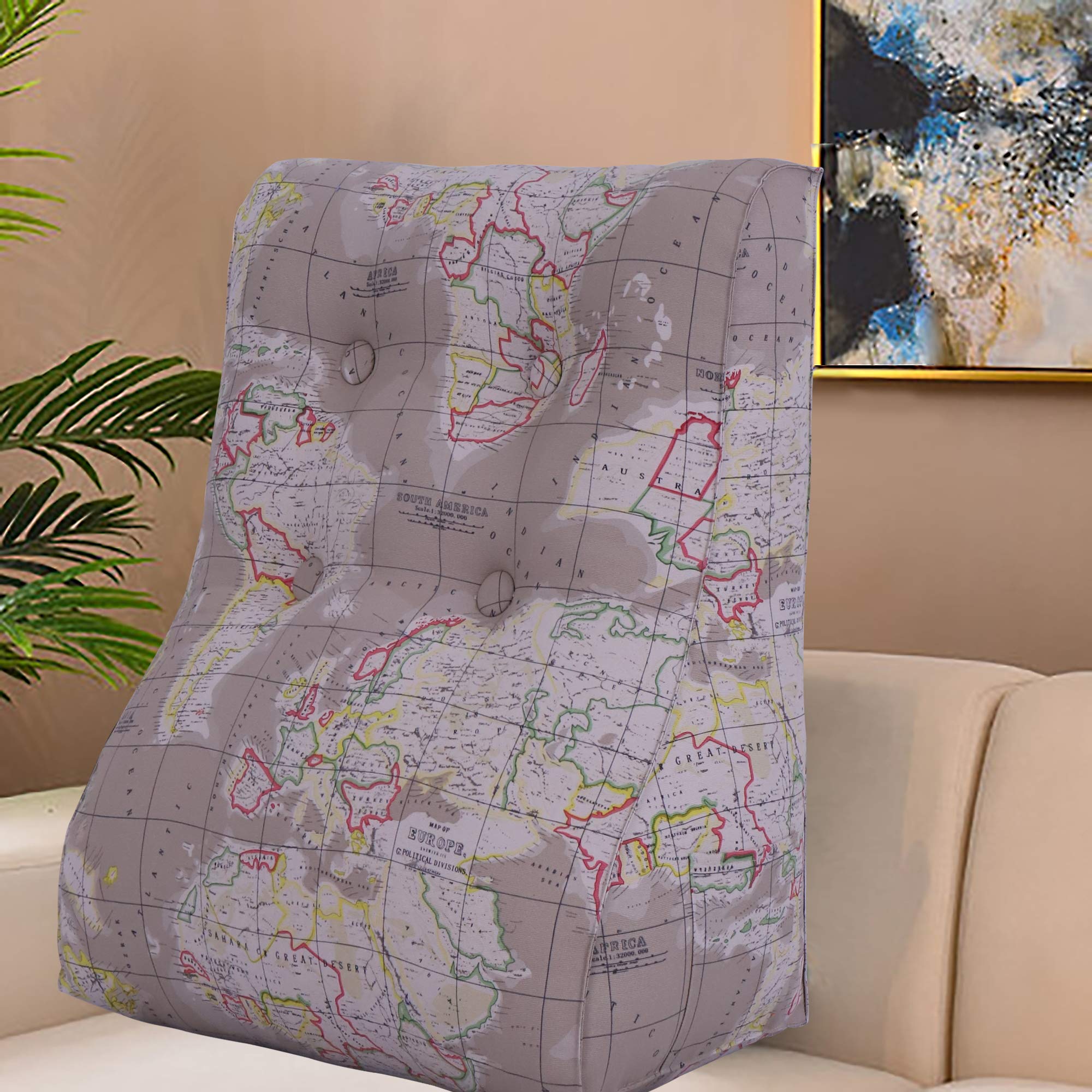 Curve Reading Pillow — World Map Tan