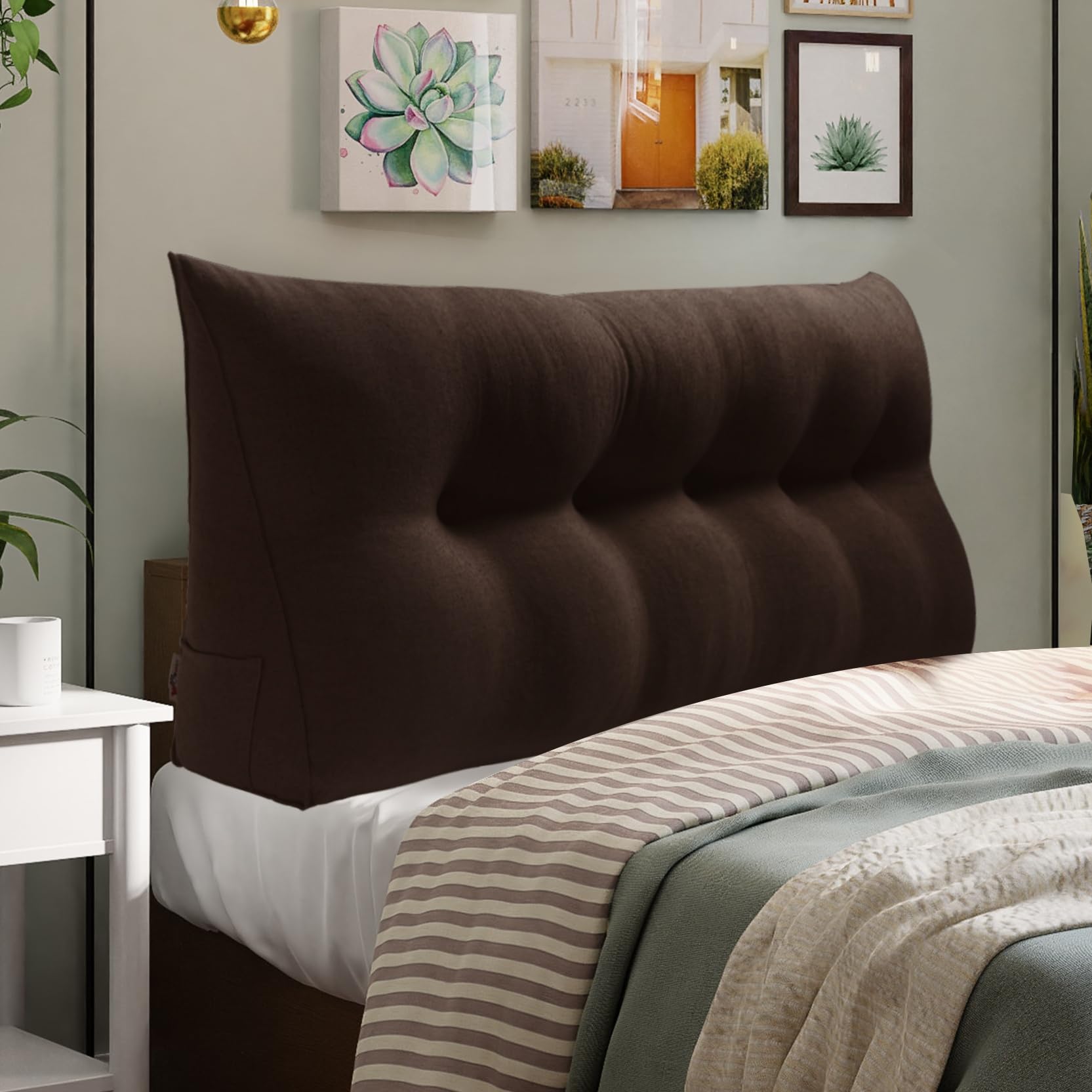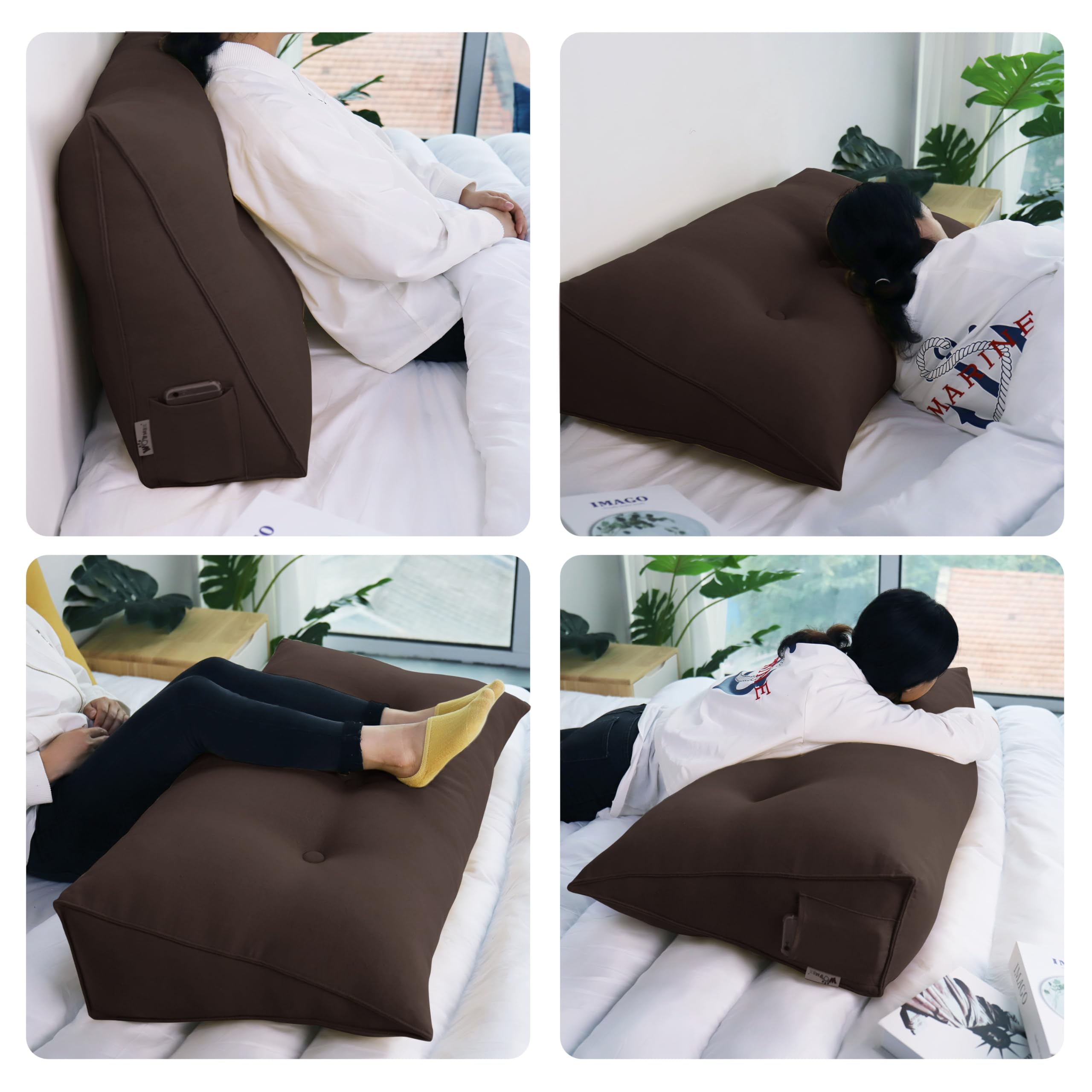 Triangular Reading Backrest Pillow 85% Linen 15% Cotton Blend—— Deep Brown